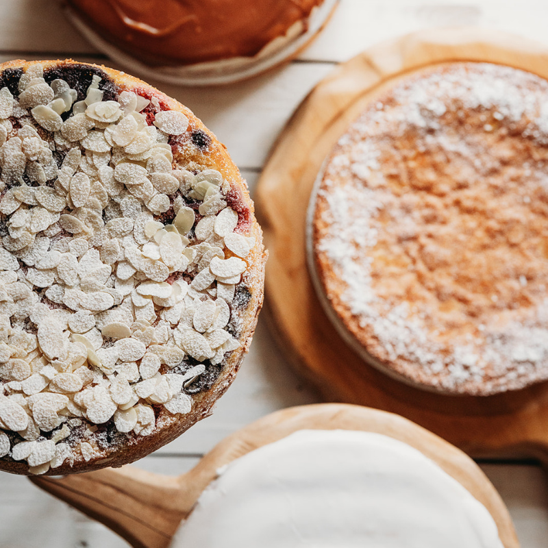 This delicious almond based cake is a moreish balance of fluffy frangipane sponge, cherries or berries, and almonds. Almonds are very typical in Sicilian cakes and across the Mediterranean, so this is a small tribute to Sicily.